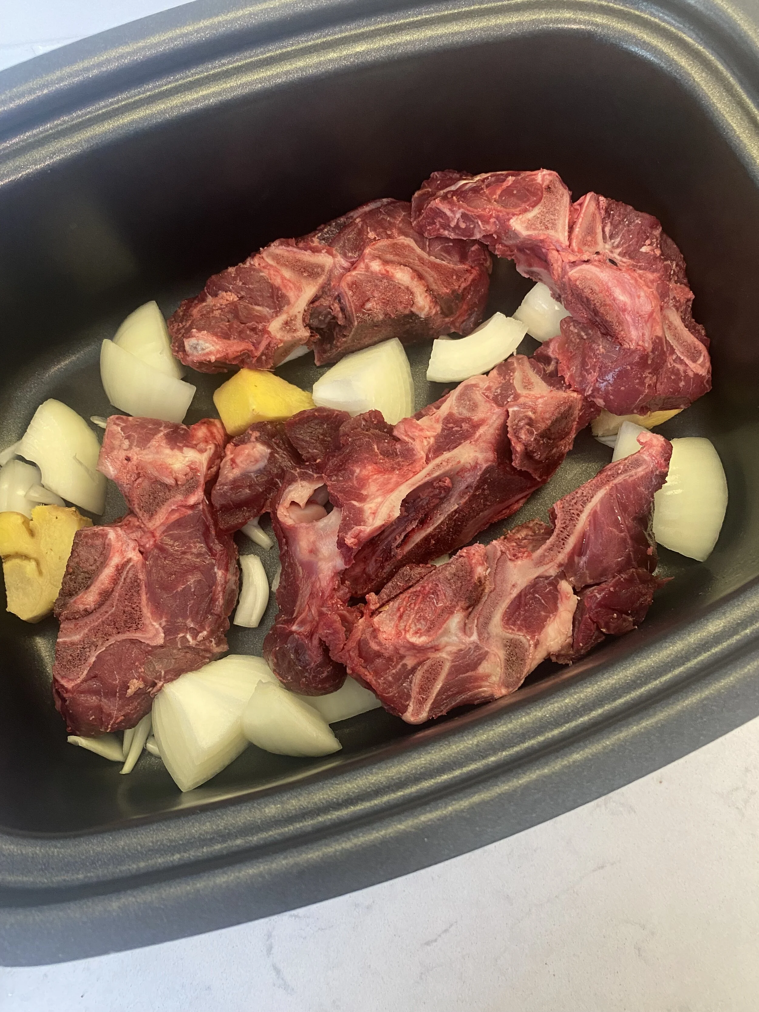 Place them in a slow cooker with the ginger and onion and cook on high for 2 hours